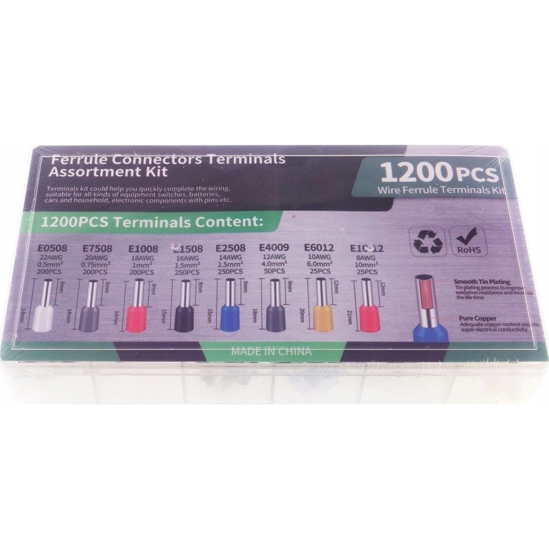 Zestaw końcówek do kabli izolowanych 1200 sztuk + zaciskarka, E6223