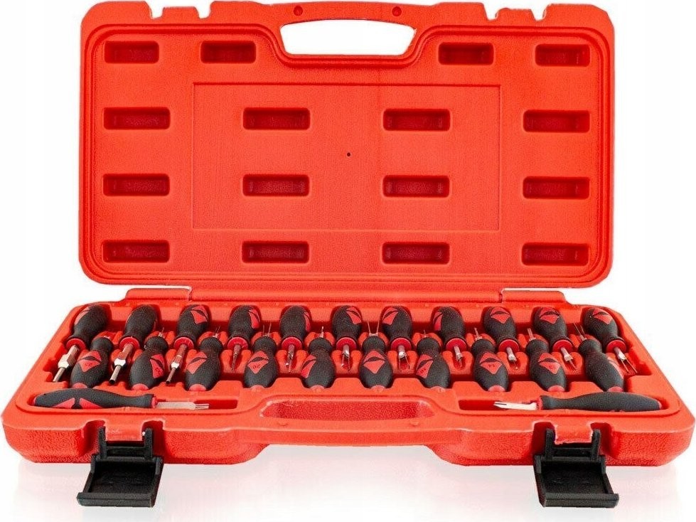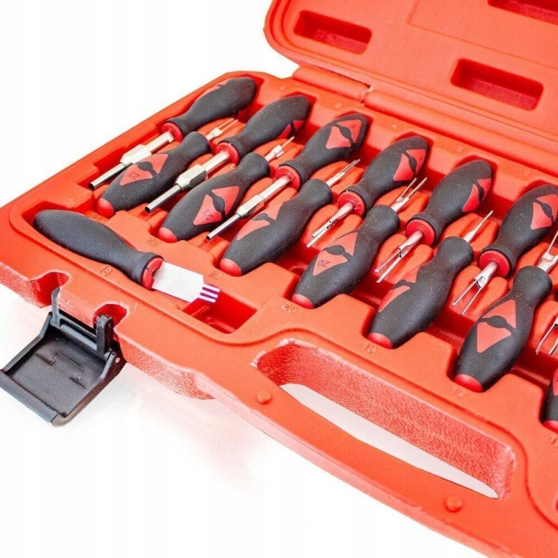 Komplet do rozłączania wszystkich typów styków w elektrycznych systemach samochodowych takich jak ABS, klimatyzacja, czujniki, radio, system nawigacji, elektroniczne wspomaganie parkowania i wiele innych.