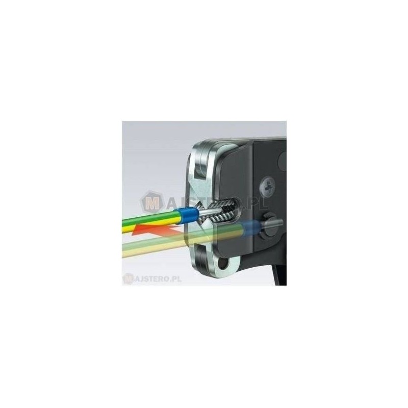 Profesjonalne szczypce samonastawne do zagniatania tulejek niemieckiego producenta Knipex. Szczypce do zagniatania tulejek kablowych oferują użytkownikom trzy duże zalety: - samoczynne dopasowanie się szczypiec do tulejki kablowej: dzięki temu monter może skupić się na szybkim wykonaniu połączenia zagniatanego wysokiej jakości - zakres pracy umożliwia stosowanie także do dużych przekrojów: zgniot czworokątny od 0,08 do 10,0 mm² - ładowanie od czoła: ułatwia pracę w trudno dostępnych miejscach.