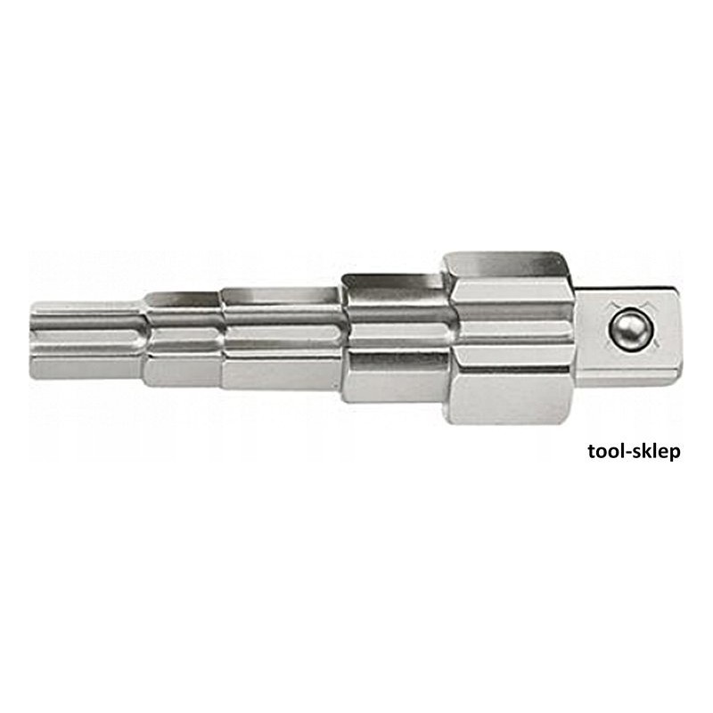 Przeznaczony do montażu i demontażu zewnętrznych łączników gwintowych (zewnętrznych) zaworów grzewczych oraz krótkich przedłużeń zaworów. Wykonany ze stali chromowo - wanadowej, hartowany i niklowany. Trzpień napędowy czworokątny 1/2"