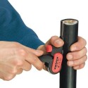 Wykonanie: obudowa z tworzywa sztucznego wzmocnionego włóknem szklanym. Głębokość przecinania ustawiana jest za pomocą śruby radełkowanej na końcu rękojeści aż do izolacji o grubości 5,0 mm. Wymienne ostrze stosowane obustronnie.