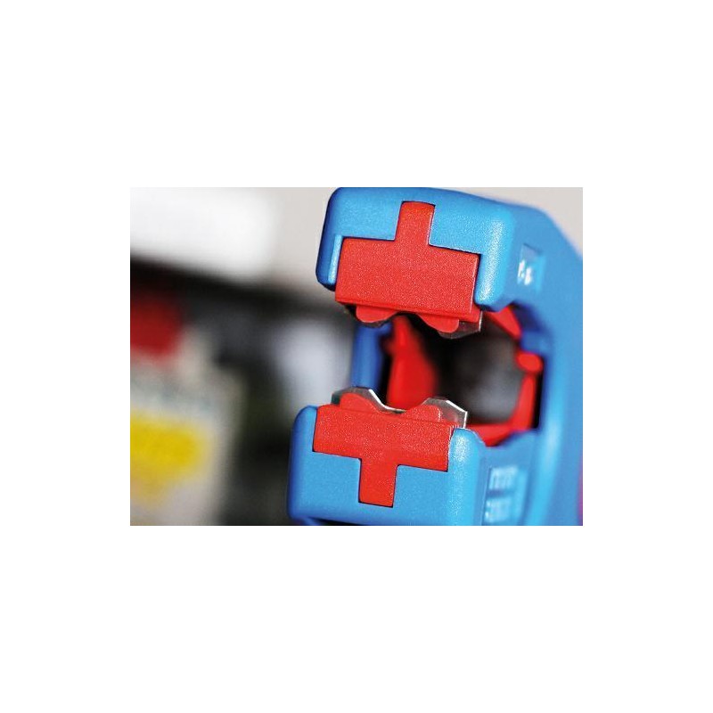Obszar roboczy: przewody 0,5 - 16 mm2, przewody sztywne 0,5 - 10 mm2. Dokładna praca dzięki optycznemu wymiarowi długości. Zintegrowany, łatwo dostępny boczny obcinacz do 3 mm O