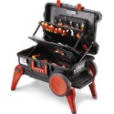 Dzięki wyjątkowo dużym kółkom skrzynkę można łatwo ciągnąć po nierównym terenie lub po schodach. Rozkładane nóżki umożliwiają zastosowanie skrzynki jako antypoślizgowego stopnia. Ponadto podwyższona pozycja umożliwia wygodne wyciąganie narzędzi, chroniąc tym sposobem kręgosłup. V-kształtne wyszczerbienie z podziałką w pokrywie skrzynki ułatwia odcinanie np. kanałów kablowych na miejscu montażu.
