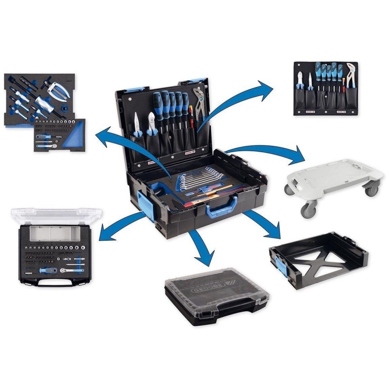 - Walizka z narzędziami GEDORE L-BOXX 136 przekonuje swoim bogatym asortymentem profesjonalnych narzędzi/wbudowana wkładka sprawdzającą brak narzędzi pomaga dostrzec brakujące elementy.
