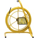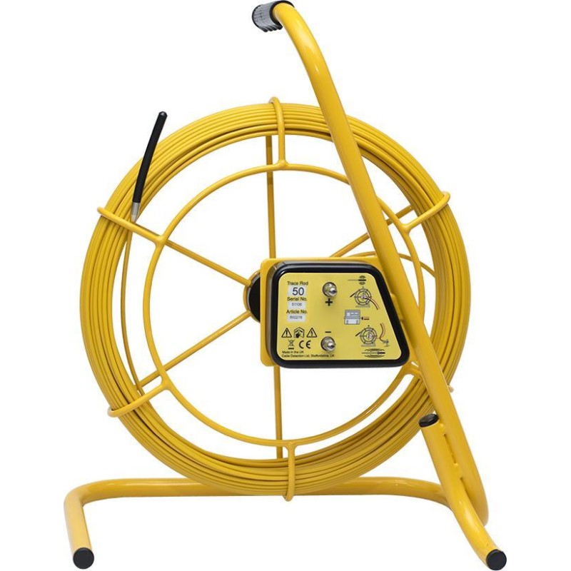 Przewód lokalizujący EziRod 50 szwajcarskiej firmy GeoMax umożliwia wykrywanie rur i kabli o małej średnicy nie przewodzących sygnałów elektrycznych. Może być wykorzystywany zarówno w trybie Liniowym oraz Sondy. a) Końcówka przewodu. Tryb sondy – wykorzystywany do dokładnego określenia końca przewodu lokalizującego. b) Przewód lokalizacyjny. Tryb liniowy- elastyczny, pokryty włóknem szklanym. We wnętrzu znajdują się przewodzące sygnał kable miedziane. c) Porty połączeniowe. Wykorzystywane do podłączenia generatora sygnału. d) Stelaż. Służy do nawijania elastycznego przewodu. Może być używany w położeniu pionowym (na rysunku) jak i poziomym. Stanowi jeden z elementów pełnego zestawu wykrywacza instalacji podziemnych EZISYSTEM. Zapytaj o większą ilość tel. 56 306 61 00