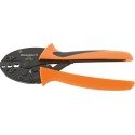Szczypce do zagniatania PZ 50 Wykonanie: korpus szczypiec ze stali, z blokadą wymuszoną umożliwiającą prawidłowe i kompletne zagniatanie. Możliwość odblokowania w przypadku ewentualnych błędów obsługi. Rękojeści z wielokomponentowymi osłonkami z tworzywa sztucznego.Zastosowanie: do zagniatania tulejek kablowych DIN 46228 (część 1 + 4), z i bez kołnierza z tworzywa sztucznego. zacisk trapezowy. Z ładowaniem z boku.