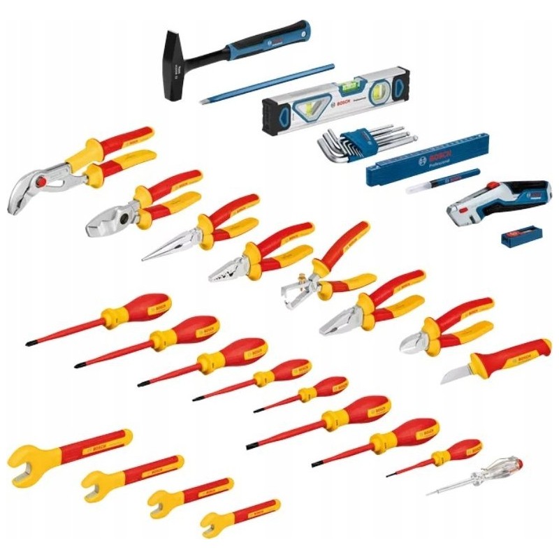 Zestaw narzędzi elektrycznych Bosch, składający się z 37 elementów, to doskonałe rozwiązanie zarówno dla profesjonalnych elektryków, jak i zapalonych majsterkowiczów. Dzięki połączeniu narzędzi VDE oraz nieizolowanych, ten zestaw spełnia wszystkie normy prawne, zapewniając jednocześnie wygodę i bezpieczeństwo podczas pracy z prądem.