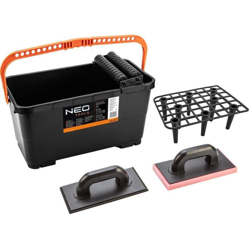 Neo Zestaw glazurniczy (Zestaw glazurniczy: pojemnik z kratką i rolkami 24l, paca z gumą, paca z gąbką miękką)