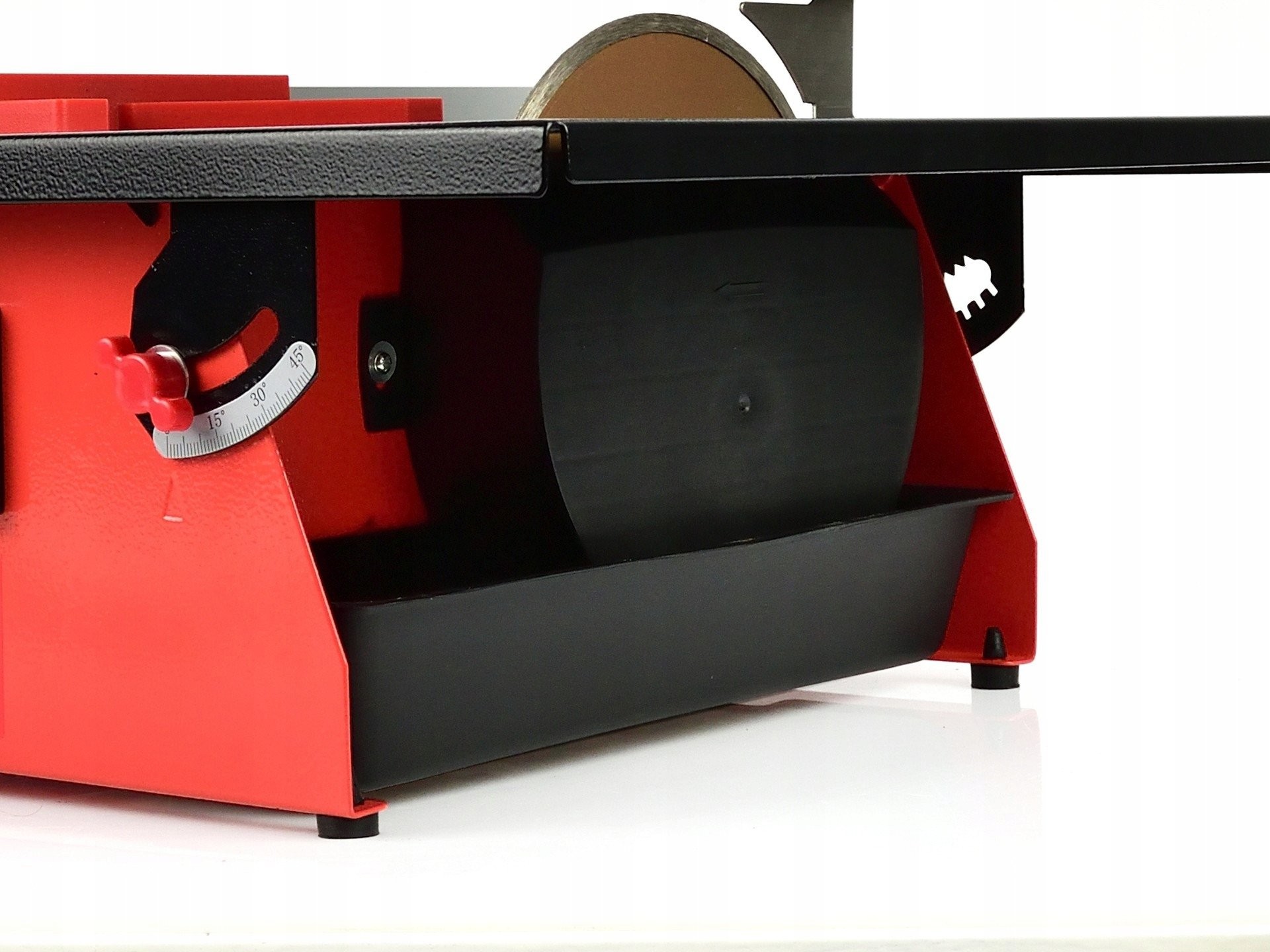 Przecinarka oferuje regulowany stół, który pozwala na cięcie pod kątem od 0 do 45 stopni. To innowacyjne rozwiązanie umożliwia precyzyjne dostosowanie cięcia do indywidualnych potrzeb, co jest szczególnie ważne przy układaniu płytek w różnych konfiguracjach.
