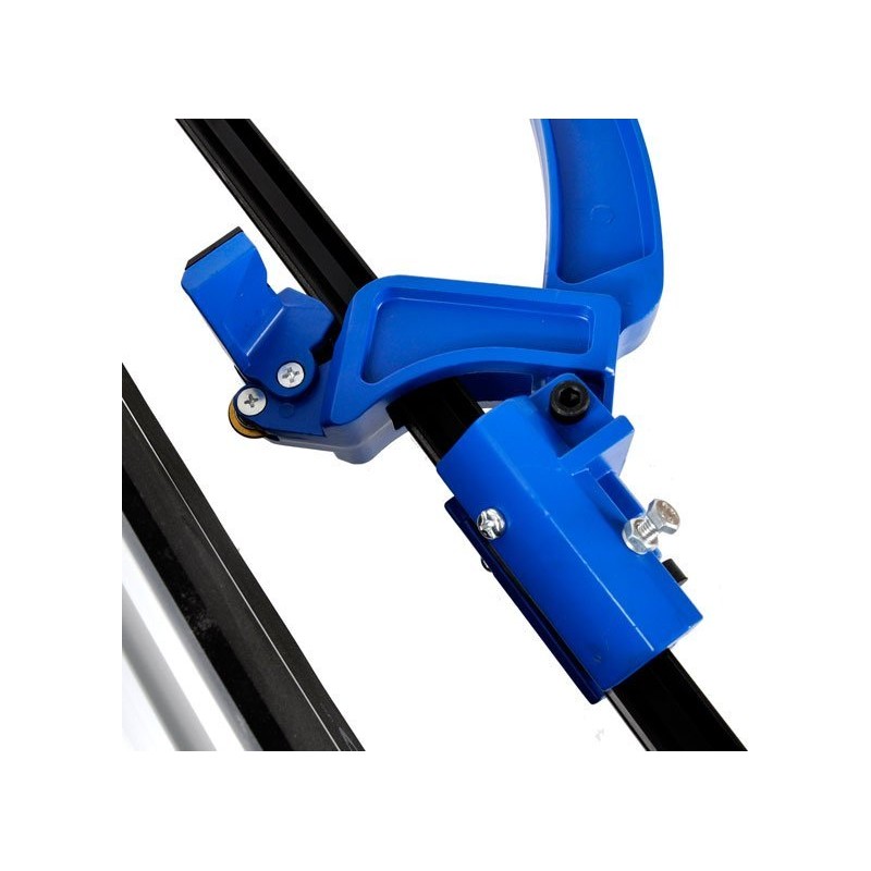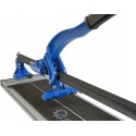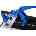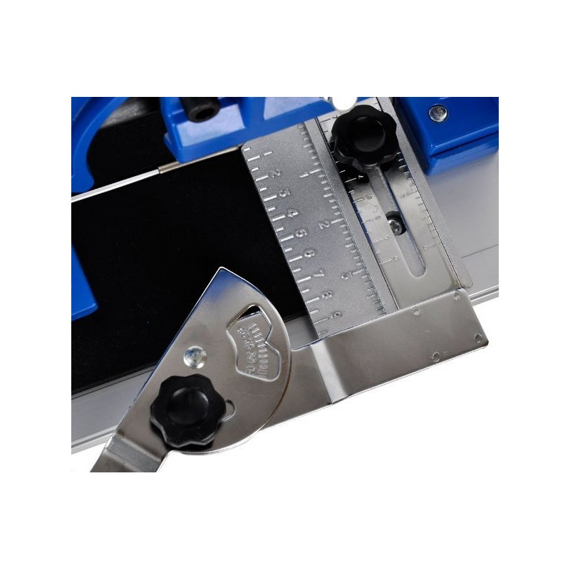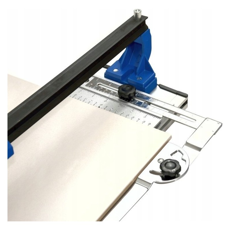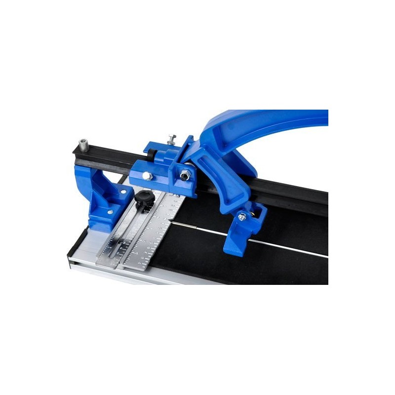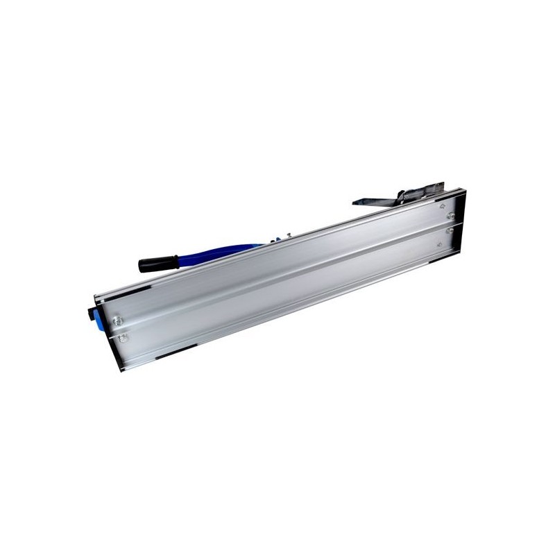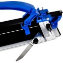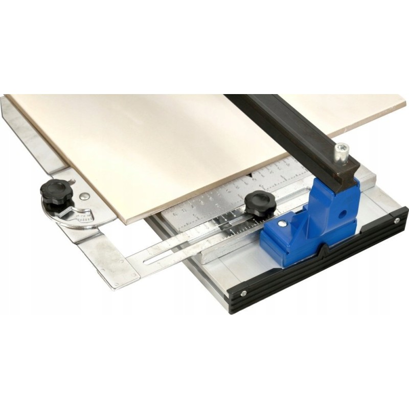 Profesjonalny przyrząd do cięcia glazury o długości powierzchni roboczej 800 mm. Wytrzymałe ostrze z węglika wolframu pokrytego warstwą tytanu zapewnia szybkie cięcie. Stabilna szyna z mechanizmem tnącym na łożyskach kulkowych zapewnia precyzyjne cięcie płytek o grubości do 16 mm. Metalowa linijka pozwala na dokładny pomiar cięcia i ustawienie kąta cięcia w przedziale od 0 do 60°. Aluminiowa podstawa z gumowymi nózkami zapewnia stabilność urządzenia w czasie pracy.