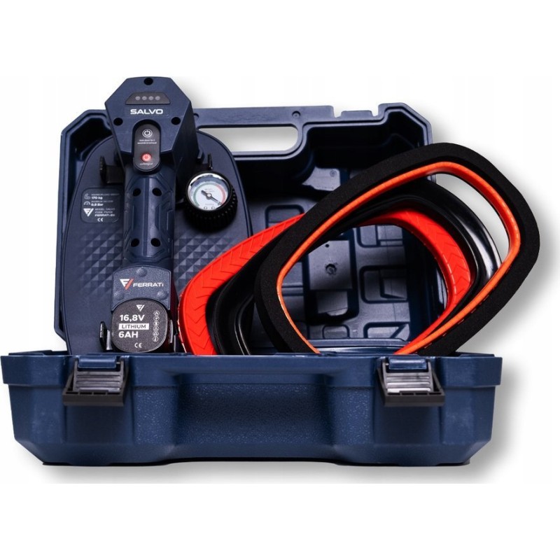 W komplecie znajdują się : walizka, przyssawka próżniowa automatyczna SALVO, 3 uszczelki, akumulator 6Ah, ładowarka, walizka transportowa, instrukcja obsługi.
