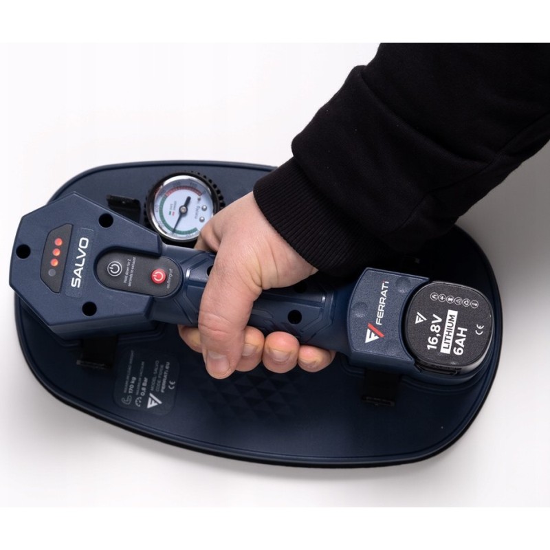 Przyssawka próżniowa automatyczna SALVO to w pełni automatyczny chwytak próżniowy o dużej sile udźwigu to najbardziej zaawansowane narzędzie wspomagające transportowanie. Wyposażony w zaawansowaną elektronikę automatycznie monitoruje podciśnienie i w przypadku jego utraty pompa próżniowa jest wywoływana do czasu przywrócenia wymaganej wartości. Znacznie zwiększa to wydajność akumulatora oraz zapewnia bezpieczeństwo w trakcie przenoszenia. Pomiar ciśnienia i wagi odbywa się w czasie rzeczywistym wpływając pozytywnie na czas reakcji. Efektywnie wyzwalana pompa o wysokiej wydajności przepływu powietrza sprawia, że czas operacyjny do uzyskania pełnej nośności chwytaka jest stosunkowo krótki. Wielowarstwowa uszczelka próżniowa z gumy piankowej jest mocna i odporna na utratę podciśnienia, mocno przylega do wymagających powierzchni. Przyssawka próżniowa automatyczna SALVO dostarczana jest w praktycznej walizce, aby chronić i bezpiecznie transportować produkt.