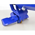 Profesjonalny wózek podnośnikowy. Podwójna pompa hydrauliczna umożliwia szybkie i płynne podnoszenie. Szeroka wzmocniona rama zapewnia bezpieczną pracę urządzenia. Cztery koła, w tym dwa obrotowe, zapewniają dużą mobilność wózka podnośnikowego.