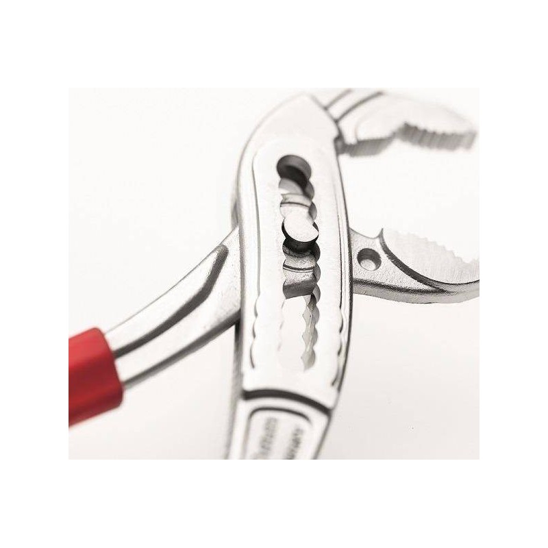 - optymalna geometria szczęk z samoblokującym ząbkowaniem do bezpiecznego zacisku