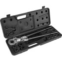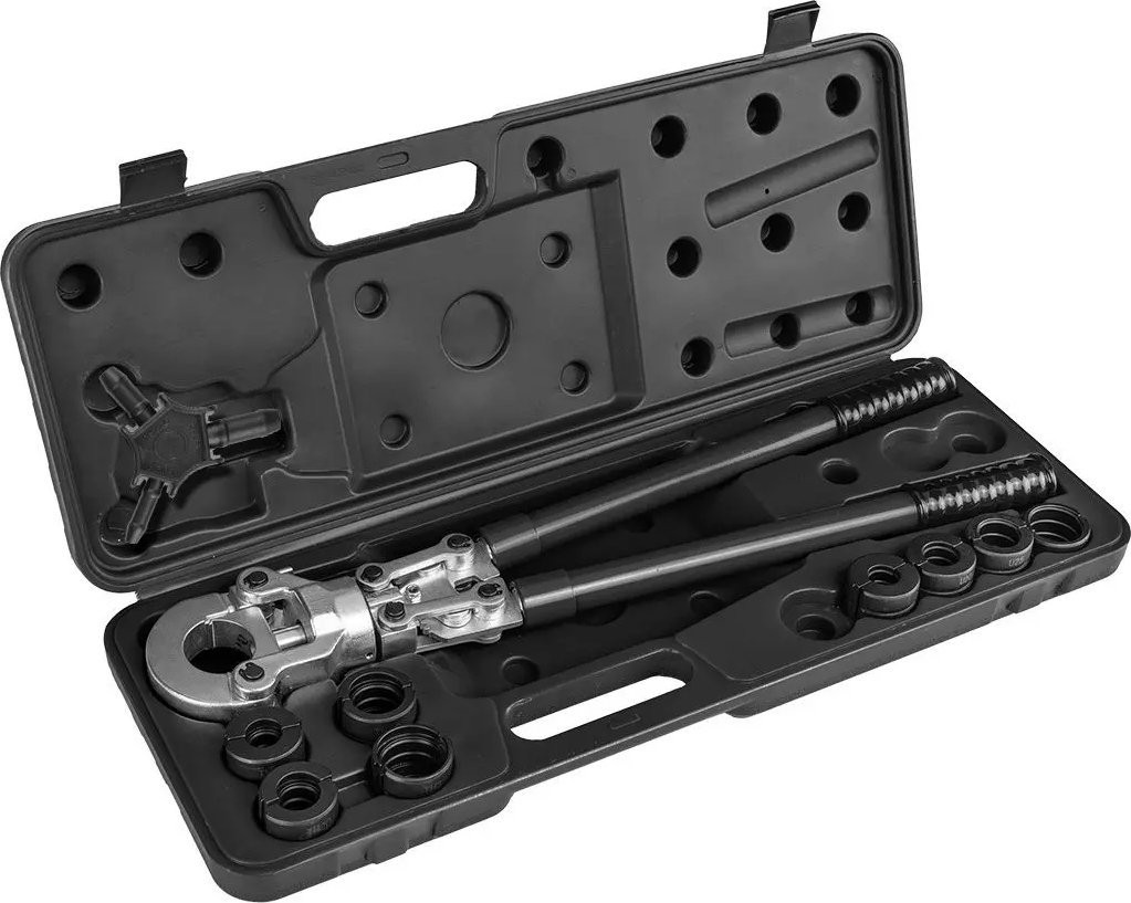 Ręczne narzędzie przydatne w pracy hydraulicznej – praska co zaciskania złączek PEX od marki NEO. Pozwala uzyskać wysoką precyzję oraz szczelne zaciskanie złączek z mocą 60 kN. Oferowana jest w zestawie z kalibratorem do rur 16, 20 i 25 mm z gratownikiem, który umożliwia nadanie rurom idealnie okrągłego przekroju. Praska posiada także 8 sztuk złączek typu U i TH. Matryce U (16 mm, 20 mm, 25 mm, 32 mm) oraz TH (16 mm, 20 mm, 26 mm, 32 mm) pozwalają na szybką wymianę prasek między zadaniami. Obrotowa głowica 360 stopni umożliwia docieranie do trudniej dostępnych miejsc, a teleskopowe ramiona z rozstawem 58 – 83 cm zmniejszą ilość siły potrzebnej do pracy. Praska do zaciskania złączek marki NEO oferowana jest w praktycznej walizce, ułatwiającej przechowywanie oraz transport.