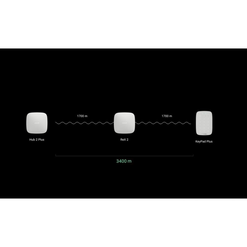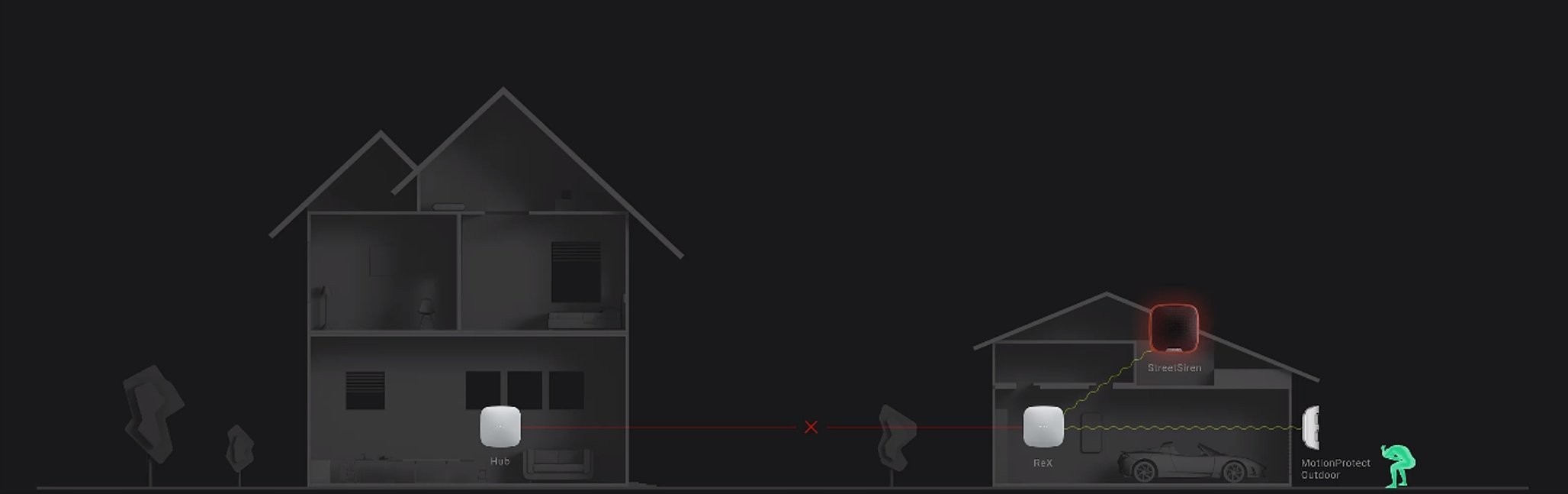 Po aktualizacji systemu operacyjnego do OS Malevich 2.13 podwajacz zasięgu ReX 2 będzie łączył się z hubem nie tylko drogą radiową, ale również poprzez Ethernet, wykorzystując przewód jako jedyny lub dodatkowy kanał komunikacyjny. Jeden system Ajax może objąć zasięgiem takie obiekty jak centrum biurowe z parkingiem podziemnym czy metalowy segmentowy hangar lub kompleks magazynowy składający się z kilku dużych budynków.