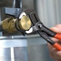 KNIPEX Cobra® - szczypce do rur nowej generacji. Nigdy więcej czasochłonnego dopasowywania rozwarcia szczęk do odpowiedniego rozmiaru. Wystarczy tylko umieścić górną szczękę na chwytanym przedmiocie, nacisnąć przycisk i przyciągnąć dolną szczękę. To takie proste!