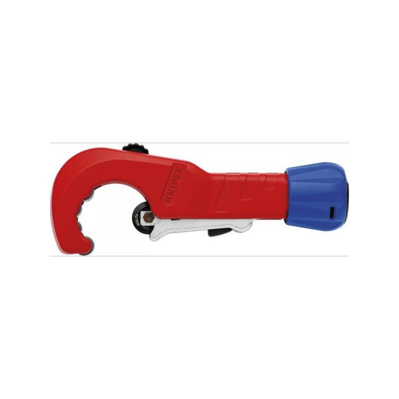 Obcinak do rur TubiX®Wykonanie: korpus z odlewu ciśnieniowego magnezu, krążek tnący łożyskowany igiełkowo i amortyzowany, ze stali łożyskowej. 4 hartowane rolki prowadzące, łożyskowane igiełkowo. Nowy mechanizm szybkiej regulacji QuickLock umożliwia dopasowanie obcinaka do średnicy rury za pomocą jednej ręki. Regulacja nacisku odbywa się poprzez pokrętło. Obcinak do rur wyposażony jest również w wysuwane i wyjmowane ostrze do gratowania. Zastosowanie: do szybkiego i łatwego obcinania rur miedzianych, mosiężnych i rur ze stali nierdzewnej o grubości ścianki do 2 mm....