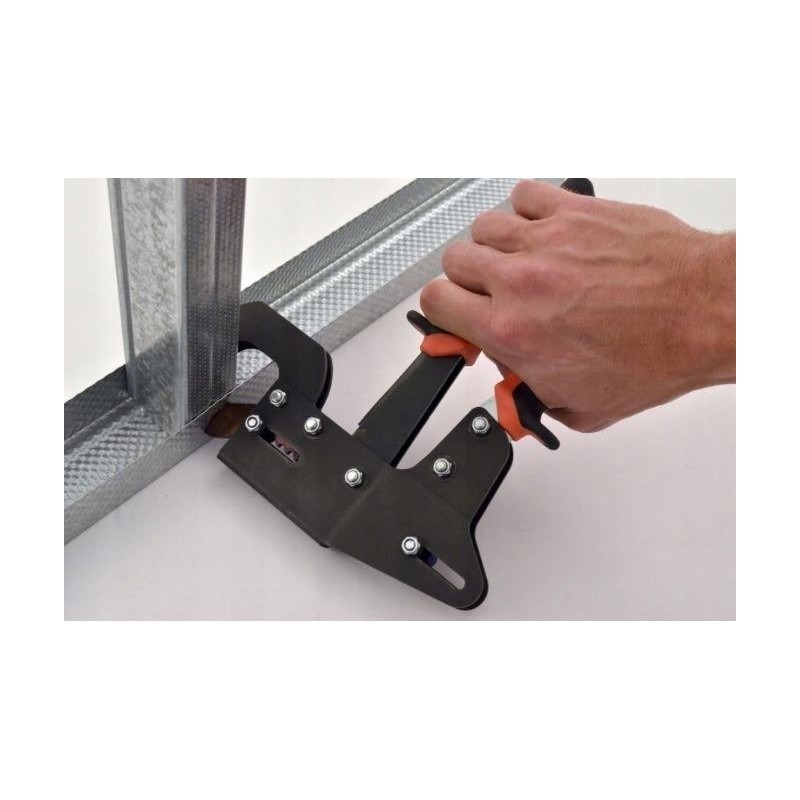Narzędzie do szybkiego, jednoręcznego łączenia profili aluminiowych pod płyty gipsowo-kartonowe.