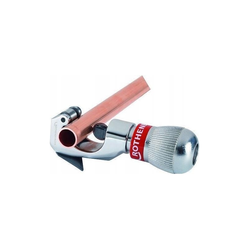 Chromowany obcinak do rur miedzianych w zakresie O 3 - 28 mm. W zestawie z zapasowym kółkiem do rur miedzianych! Obszar zastosowań: Do rur z miedzi, mosiądzu i aluminium w zakresie O 3 - 25 mm. Stały promień pracy, Lekka aluminiowa obudowa, Ochrona kółka tnącego dzięki blokadzie posuwu, Chowany wewnętrzny gratownik i zapasowe kółko w rękojeści, Zabezpieczony gwint rolki – ochrona przed brudem i zacinaniem. Odlewana obudowa: stabilna i trwała. Zabezpieczone wrzeciono śruby: ochrona przed zabrudzeniem i zakleszczeniem. ...