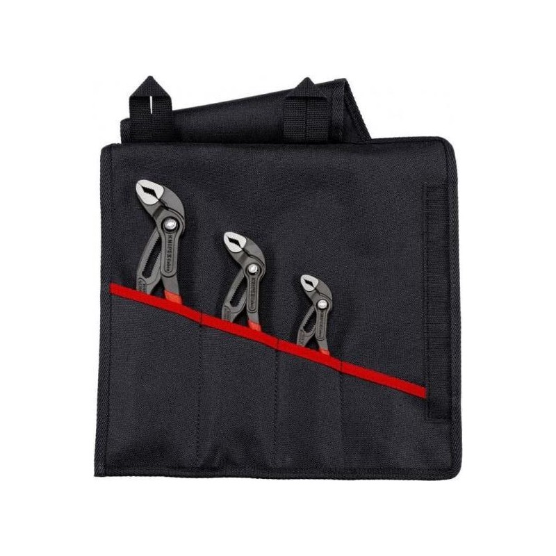 Dane techniczne:Nr art.: 00 19 55 S8EAN: 4003773086529Waga: 820 gWymiary: 330 x 115 x 35 mmKNIPEX Cobra® to legendarne i zaawansowane technologicznie szczypce nastawne do rur KNIPEXNiezwykle mocny mechanizm samoczynnego zaciskania umożliwia pracę bez wysiłku i zapobiega ześlizgiwaniu się narzędzia z obrabianych przedmiotówTeraz dostępne w zestawie w różnych rozmiarach, w zwijanym etui i z odpowiednim haftowanym motywem.Każdy zestaw zawiera trzy zaawansowane technologicznie zczypce nastawne do rur w różnych rozmiarach ze smukłymi rękojeściami pokrytymi tworzywem sztucznymSzczypce posiadają bardzo solidny mechanizm samoczynnego zaciskania i pomysłowy system precyzyjnej regulacji za pomocą przyciskuZestaw zawiera:1 x KNIPEX Cobra® Szczypce nastawne do rur nowej generacji1 x KNIPEX Cobra® Szczypce nastawne do rur nowej generacji1 x KNIPEX Cobra® Szczypce nastawne do rur nowej generacji**Zdjęcia pogląowe....