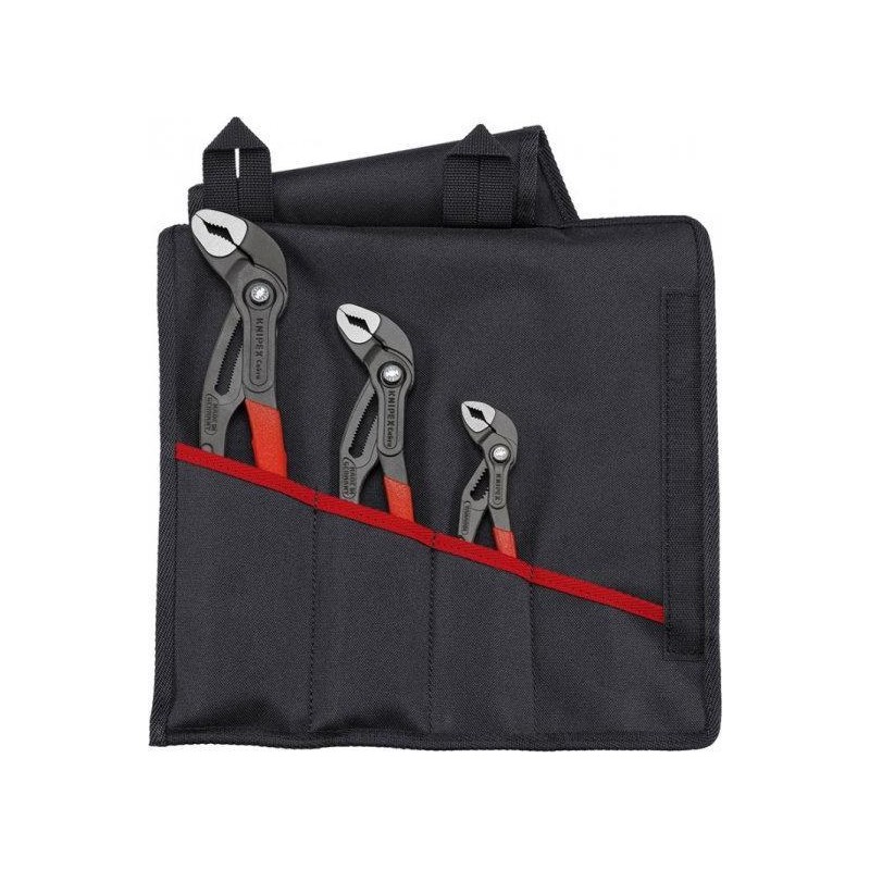 Dane techniczne:Nr art.: 00 19 55 S9EAN: 4003773086536Waga: 1.255 gWymiary: 330 x 115 x 35 mmKNIPEX Cobra® to legendarne i zaawansowane technologicznie szczypce nastawne do rur KNIPEXNiezwykle mocny mechanizm samoczynnego zaciskania umożliwia pracę bez wysiłku i zapobiega ześlizgiwaniu się narzędzia z obrabianych przedmiotówTeraz dostępne w zestawie w różnych rozmiarach, w zwijanym etui i z odpowiednim haftowanym motywem.Każdy zestaw zawiera trzy zaawansowane technologicznie zczypce nastawne do rur w różnych rozmiarach ze smukłymi rękojeściami pokrytymi tworzywem sztucznymSzczypce posiadają bardzo solidny mechanizm samoczynnego zaciskania i pomysłowy system precyzyjnej regulacji za pomocą przycisku**Zdjęcia poglądowe....