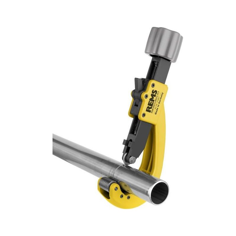 REMS RAS Cu-INOX 8 – 64 S z łożyskowanym kółkiem tnącym oraz łożyskowanymi rolkami dociskowymi zapewnia niezwykle łatwe cięcie. Szybkie przestawienie wrzeciona w obydwu kierunkach.