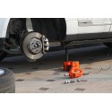 Podnośnik samochodowy można podłączyć do gniazda zapalniczki lub bezpośrednio do akumulatora, dzięki czemu pojazd zostanie szybko podniesiony. W zależności od potrzeby samochód można unieść od 13,5 do 36 cm.