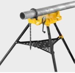 - Regulowana głowica mocująca do mocowania stanowiska do obróbki rur pomiędzy sufi tem a podłogą zapewniająca niezwykle pewne ustawienie. Sprawdzony 3-nożny statyw zapewniający pewne ustawienie, składany, łatwy w rozkładaniu i transporcie.