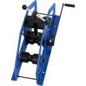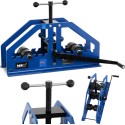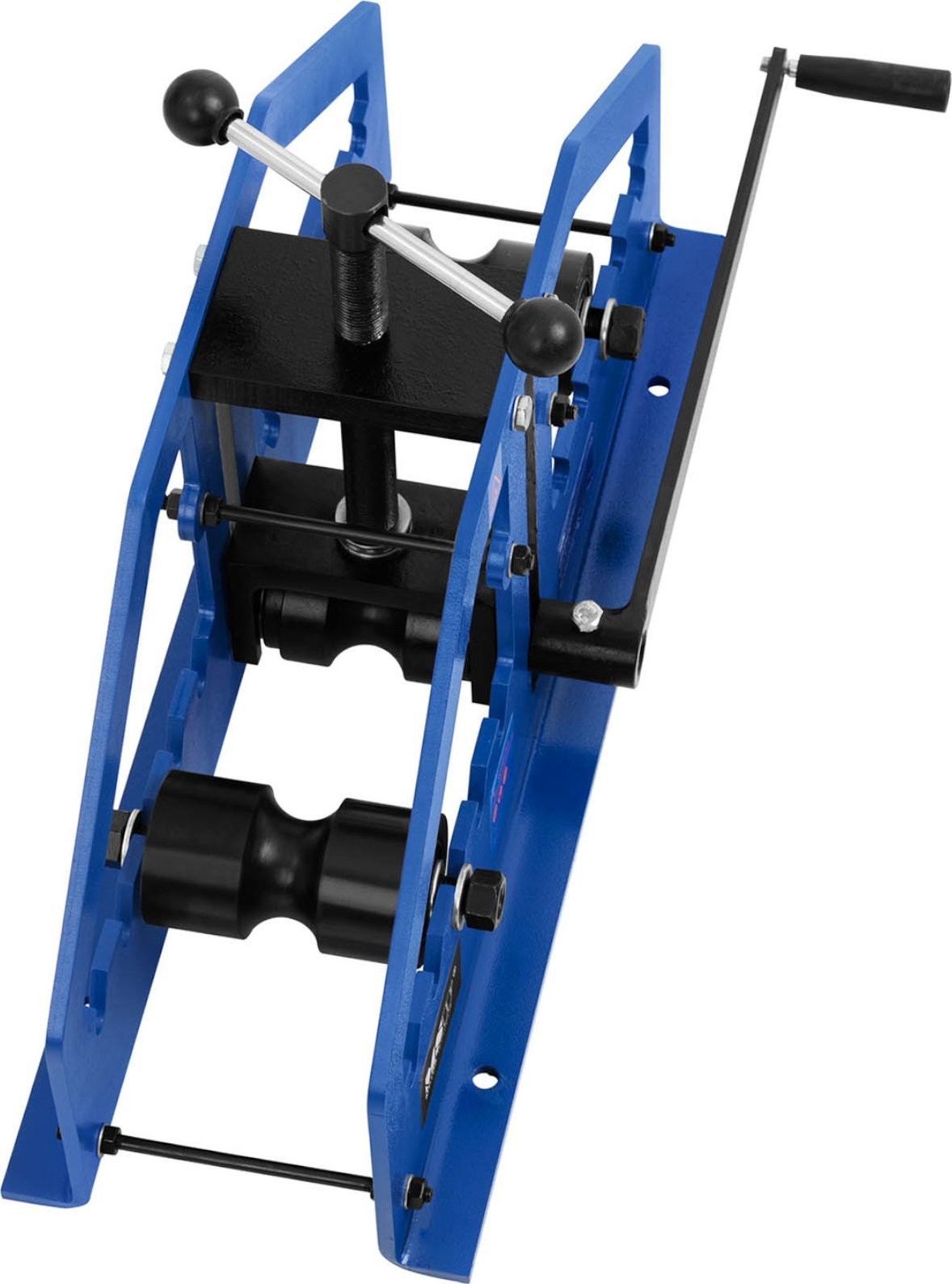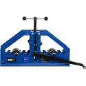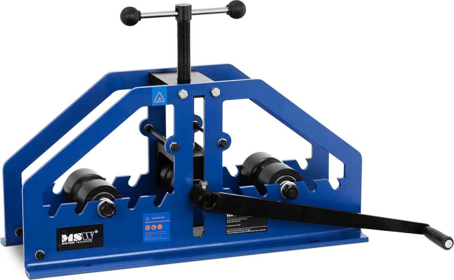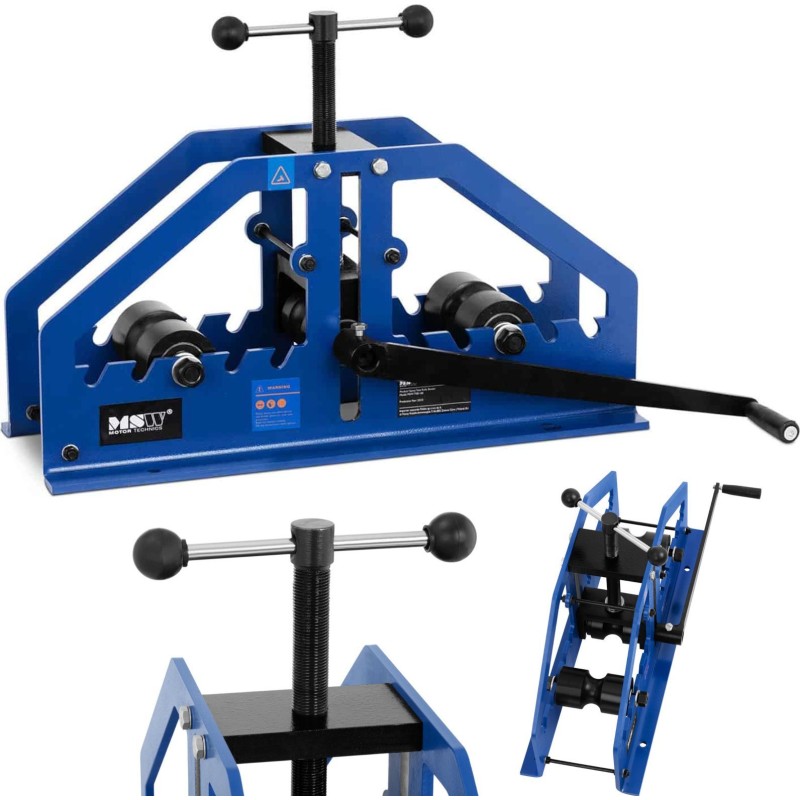Walcarka do rur marki MSW sprawdzi się do modelowania metalowych materiałów stosowanych w budownictwie, warsztatach samochodowych czy pracowniach hobbystycznych. Urządzenie można użyć do kształtowania rur konstrukcyjnych (gr. 1-1/2", min. promień łuku 20") i przewodowych (gr. 2", min. promień łuku 70"). Nadaje się także do płaskowników (gr. 1-1/4", min. promień łuku 10"), ceowników (gr. 1 x 2", min. promień łuku 60") oraz profili kwadratowych (gr. 2", min. promień łuku 70") i prostokątnych (gr. 1 x 2", min. promień łuku 60"). Zakres gięcia wynosi od 0 do 360°. Regulowana forma pozwala dostosować walcarkę do wymiarów obrabianego materiału. Górną rolkę ustawia się dużym pokrętłem. Minimalna średnica walcowania wynosi 660 mm a maksymalna 1200 mm. Konstrukcję urządzenia wykonano ze stali niskowęglowej a rolki wykonano ze stali węglowej. Otwory montażowe o średnicy 11 mm pozwalają na przymocowanie sprzętu do podłoża.