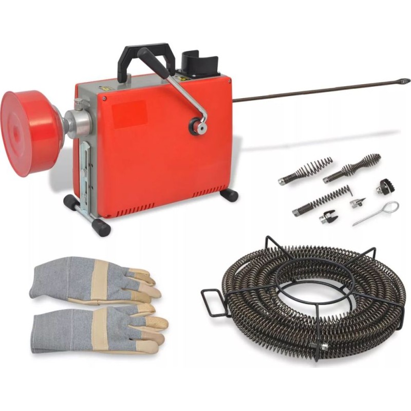 Do tej potężnej maszyny do czyszczenia rur dołączono spirale o różnych rozmiarach oraz obszerny zestaw głowic drenujących, które umożliwią mechaniczne oczyszczenie rur i usunięcie zatorów. Maszyna czyszcząca przeznaczona jest zarówno do użytku profesjonalnego, jak i domowego.