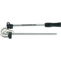 Wykonanie: lekka konstrukcja ze stałym i ruchomym ramieniem gnącym. Wskaźnik promienia gięcia z podziałką stopniową 0–180° z dokładnością do 30°, mechanizm zaciskowy do lepszego przytrzymywania rury. Ruchome ramię gnące z rękojeścią z tworzywa sztucznego.