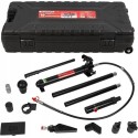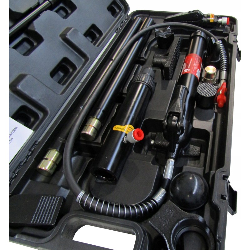 Zestaw zawiera pompę hydrauliczną, cylindry, przedłużacze i zakrzywione nasadki. Można go również uzupełnić o cylinder hydrauliczny o odwróconym działaniu oraz nasadkami mocującymi.