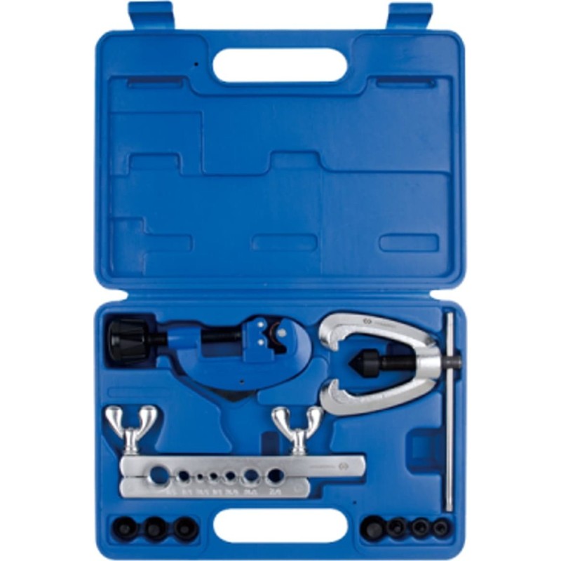 Do rur miedzianych, aluminiowych i mosiężnych o grubości ścianek do 1 mm w instalacjach klimatyzacji, grzewczych i hamulcowych. W zestawie:- ucinak do rurek 3-30 mm - blok zaciskowy z otworami: 3/16", 1/4", 5/16", 3/8", 7/16", 1/2", 5/8"- praska do rurek- adaptery: 3/16", 1/4", 5/16", 3/8", 7/16", 1/2", 5/8" Karta produktu - 7CA0110S