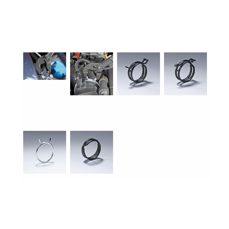 - Jeden typ szczypiec do opasek zaciskowych i pierścieni z taśmy sprężynowej o rozmiarze do 70 mm. Obrotowe szczęki wymienne pozwalają na dopasowanie do każdej długości. Szczypce gwarantują pewny chwyt opasek w każdej sytuacji