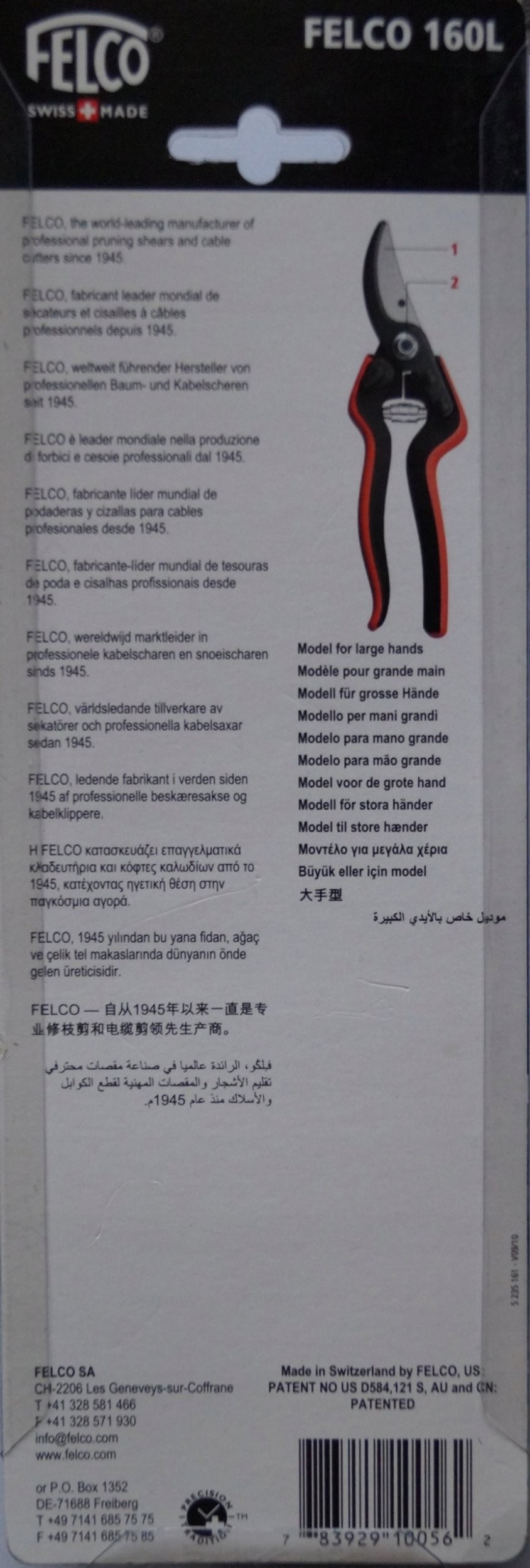 Większy sekator FELCO 160L to doskonały wybór dla osób o dużych dłoniach, które potrzebują niezawodnego narzędzia do wszelkich prac ogrodniczych związanych z przycinaniem, przy których nie wymaga się specjalnych warunków. Bardzo mocne i lekkie uchwyty wykonane z włókien kompozytowych, prosty i stabilny system regulacji ostrzy oraz ergonomiczna ochrona nadgarstków i dłoni sprawiają, że korzystanie z tego narzędzia jest czystą przyjemnością. Możemy wymieniać efektywną działanie rowka na ostrzu, wyjątkową łatwość obsługi i ostrza wykonane z hartowanej stali, ale gdy w końcu dostaniesz narzędzie dostosowane do Twoich potrzeb i budowy, na pewno będziesz chciał od razu zacząć pracować.