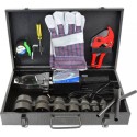 Polifuzyjna zgrzewarka do rur termoplastycznych 16-63mm 1500W Polifuzyjna zgrzewarka do rur i kształtek z tworzyw termoplastycznych (polipropylen, polietylen itp.). Duża moc zgrzewarki 1500W zapewnia szybkie nagrzewanie matryc grzewczych. Wszystkie matryce grzewcze pokryte zostały warstwą teflonu, zapewnia to wysoką jakość połączenia. Cechy produktu: regulacja temperatury 50-300°C matryce grzewcze pokryte warstwą teflonu zakres pracy 16-63mm dwa stopnie grzania wysoka jakość wykonania całość zestawu w metalowej walizce Specyfikacja techniczna: Zasilanie: 230V Moc: 1500W Zakres prac: 16 – 63mm Temperatura pracy: 50-300°C Rozmiary matryc: 16mm; 20mm; 25mm; 32mm; 40mm; 50mm; 63mm Zawatrość zestawu: element grzejny o mocy 1500W matryce o rozmiarach: 16mm; 20mm; 25mm; 32mm; 40mm; 50mm; 63mm klucz imbusowy miara zwijana 3m rękawice ochronne stojak zgrzewark śrubokręt metalowa walizka