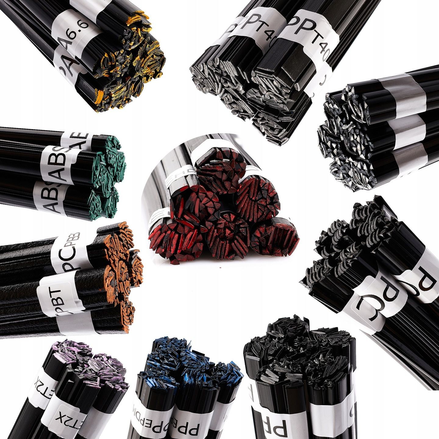 Zestaw 10 najważniejszych spoiw, do spawania plastiku. Jest to podstawowy zestaw dzięki któremu pospawasz większość elementów plastikowych. Tym zestawem pospawasz: zderzaki, nadkola, błotniki, obudowy silnika, listwy boczne, progi i inne elementy elastyczne, owiewki, szyberdachy, kratki wlotowe, półki lodówek, elementy reklam, kołpaki, obudowy lusterek, osłony silników, owiewki skuterów, quadów, chłodnice, obudowy wentylatorów, kratki , wloty powietrza, elementy przekładni, zbiorniki przemysłowe, pasy izolacyjne, prowadnice, zawory i wiele innych rzeczy, dokładny opis, wraz z zastosowaniem każdego spoiwa znajdziesz poniżej.