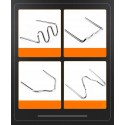 - W zestawie: RS18 (płaska fala,drut grubości 0,8mm), RS28 (fala, drut grubości 0,8mm), RS46 (kąt wewnętrzny, drut grubości 0,6mm), RS38 (kąt zewnętrzny, drut grubości 0,8mm), obcinaczki, nóż tapicerski, instrukcja obsługi, walizka