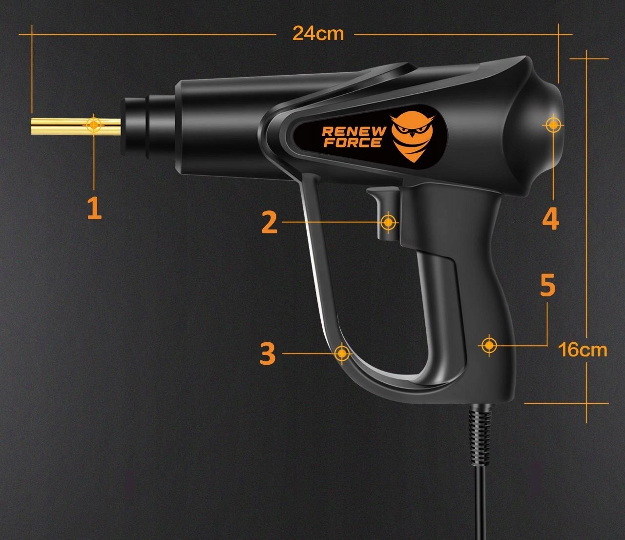 ⚡Spawarka do plastiku przypomina swoją budową lutownicę pistoletową i jest obsługiwana w podobny sposób. Wystarczy podłączyć urządzenie do zasilania, umieścić wybrany grot w widełkach i nacisnąć przycisk. Groty wykonane z metalu nagrzewają się błyskawicznie i już po chwili urządzenie jest gotowe do pracy!