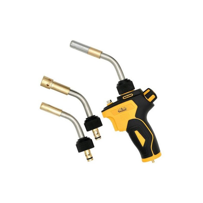 - 3 wymienne dysze:1 – precyzyjna: zużycie gazu 41,2 g/h, energia 0,58 KW2 – super wirująca: zużycie gazu 248 g/h, energia 3,73 KW3 – opalanie i przypiekanie: zużycie gazu 244 g/h, energia 3,45 KW