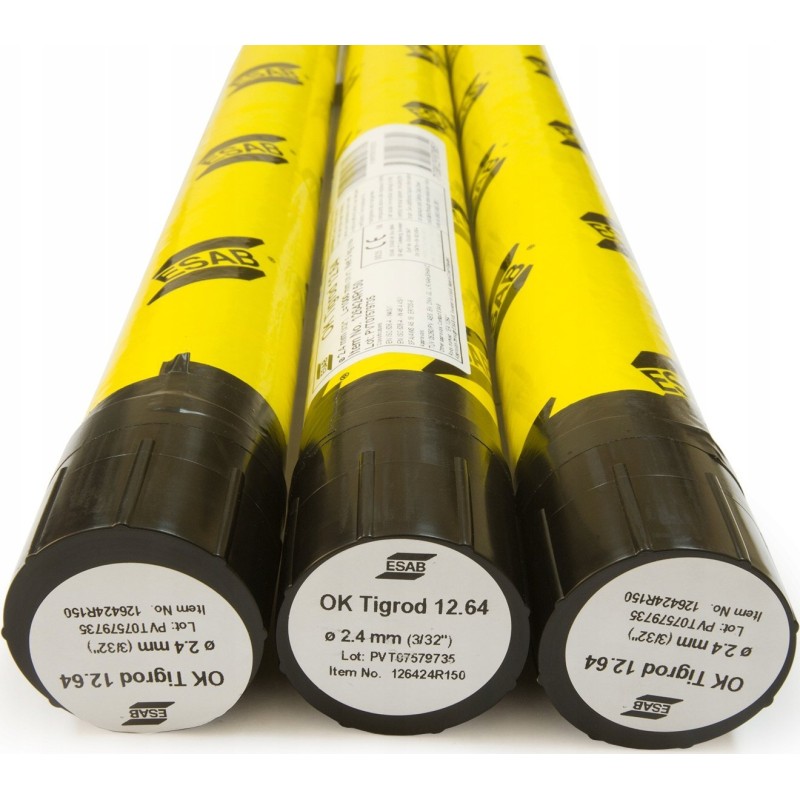 OK Tigrod 12.64 to powlekany miedzią drut stały W4Si1 / ER70S-6 ze stopu Mn-Si do GTAW ze stali niestopowych, stosowany w budownictwie ogólnym, produkcji zbiorników ciśnieniowych i przemyśle stoczniowym. Ma nieco wyższą zawartość manganu i krzemu niż OK Tigrod 12.61, aby zwiększyć wytrzymałość spoiny metalu. Sprzyja to również niskiej wrażliwości na zanieczyszczenia powierzchniowe i przyczynia się do gładkich, solidnych spoin.