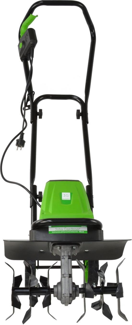 Elektryczna glebogryzarka-kultywator John Gardener 45 cm 280 rpm Glebogryzarka znacznie ułatwia pracę w ogrodzie. Pozwala szybciej i łatwiej przygotować ziemię m.in. pod ogródek warzywny. Szeroki wał napędowy o szerokości 450 mm z 6 nożami z łatwością spulchnia, rozdrabnia i miesza ziemię. Metalowa osłona zabezpiecza operatora glebogryzarki przed ewentualnym odpryskiem kamieni. Wysoka mobilność urządzenia dzięki obecności 2 kół. Z glebogryzarką John Gardener praca w ogrodzie to czysta przyjemność. Cechy produktu: 6 wydajnych noży mocny silnik o liczbie obrotów do 280 na minutę szerokość robocza 450 mm głębokość robocza 220 mm 2 koła znacznie ułatwiające pracę dwa poziomy blokady pozycji rączki Specyfikacja techniczna: Producent: John Gardener Napięcie zasilania: 230V - 240V / 50Hz Obroty silnika: 280 obrotów/minutę Liczba noży: 6 Szerokość robocza: 450 mm Głębokość robocza: 220 mm Stopień ochrony: IPX4 Certyfikaty: CE, RoHS