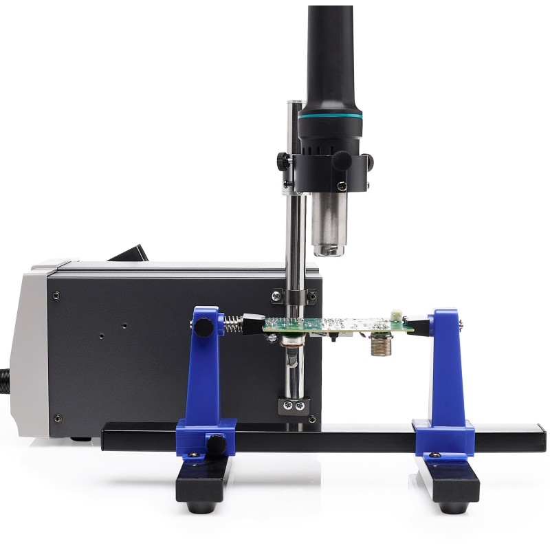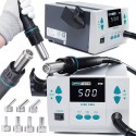 Bezpieczeństwo podczas pracy z delikatnymi elementami elektronicznymi zapewnia antyelektrostatyczna konstrukcja (ESD Safe). Stacja wyposażona jest w duży, czytelny wyświetlacz LCD, który ułatwia kontrolę nad temperaturą i przepływem powietrza. Dodatkowo, możliwość zabezpieczenia zapisanych ustawień hasłem oraz blokowanie przycisków zwiększa ochronę przed przypadkowymi zmianami ustawień.