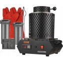 Ten elektryczny piec do topnienia jest wyposażony w trwałe tygle grafitowe, które są odporne na wysokie temperatury i korozję. Dwa szerokie i stabilne uchwyty oraz siatka odporna na ciepło zapewniają dodatkową wygodę i ułatwiają obsługę bez dotykania gorących ścian pieca.