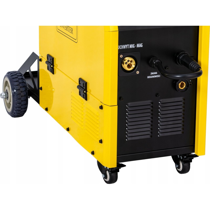 ✅Urządzenie posiada podwozie jezdne z 4 kołami, 2 przednie koła są skrętne dzięki czemu spawarka jest bardzo mobilna.