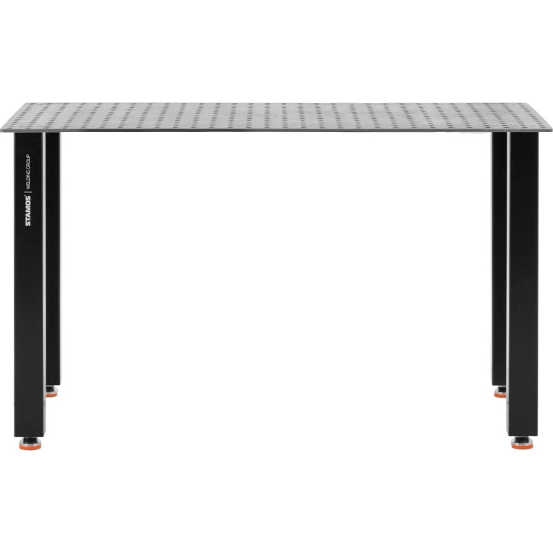 Stół spawalniczy marki Stamos Welding Group sprawdzi się do obrabiania metalowych przedmiotów. Perforowana stalowa płyta została osadzona na mocnych nogach o wymiarach 80 x 80 x 885 mm, które są regulowane nawet o 50 mm. Wytrzymały stół wykonany został z solidnej stali (Q345C/Q235). Otwory w blacie pozwalają przymocować i precyzyjnie wyrównać obrabiane przedmioty za pomocą zacisków. Powierzchnia robocza 150 x 100 cm zapewnia wystarczająco dużo miejsca do pracy.
