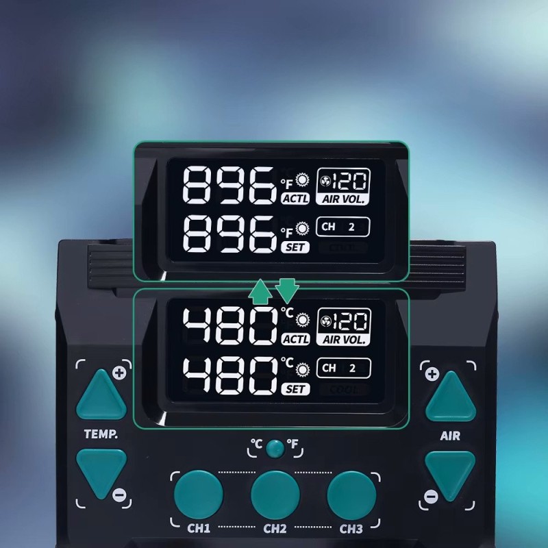 Cyfrowy wyświetlacz LED pozwala na dokładne dostosowanie ustawień temperatury w zakresie od 100 do 500 °C, co jest kluczowe przy pracy z różnymi materiałami. Użytkownicy mogą łatwo monitorować i regulować temperaturę, co zapewnia lepsze rezultaty lutowania.