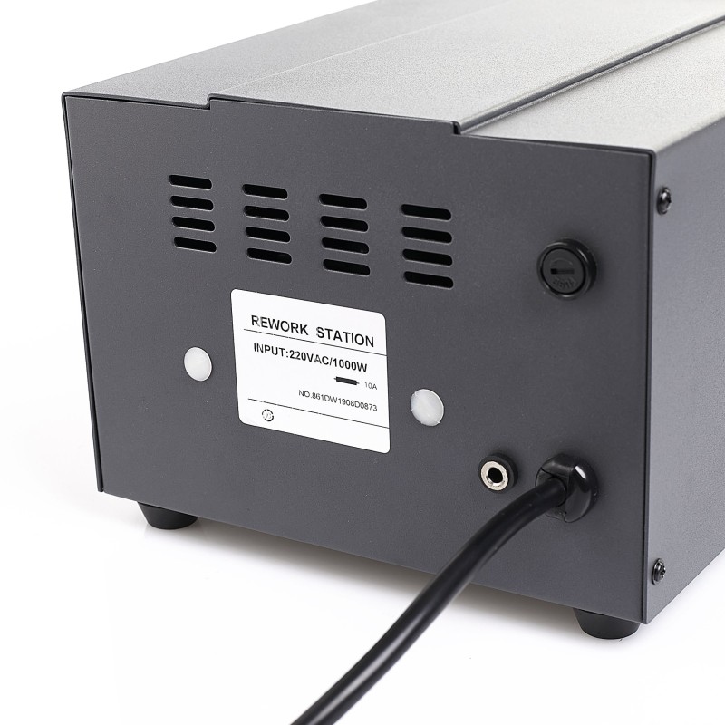 Dzięki potężnej turbinie, stacja lutownicza 861DW dysponuje mocą 1000 W, co umożliwia szybkie osiąganie wymaganej temperatury. Użytkownicy mają możliwość dostosowania temperatury w zakresie od 100 do 500°C oraz regulacji siły nadmuchu w przedziale 1-120 l/min, co zapewnia doskonałą kontrolę nad procesem lutowania.