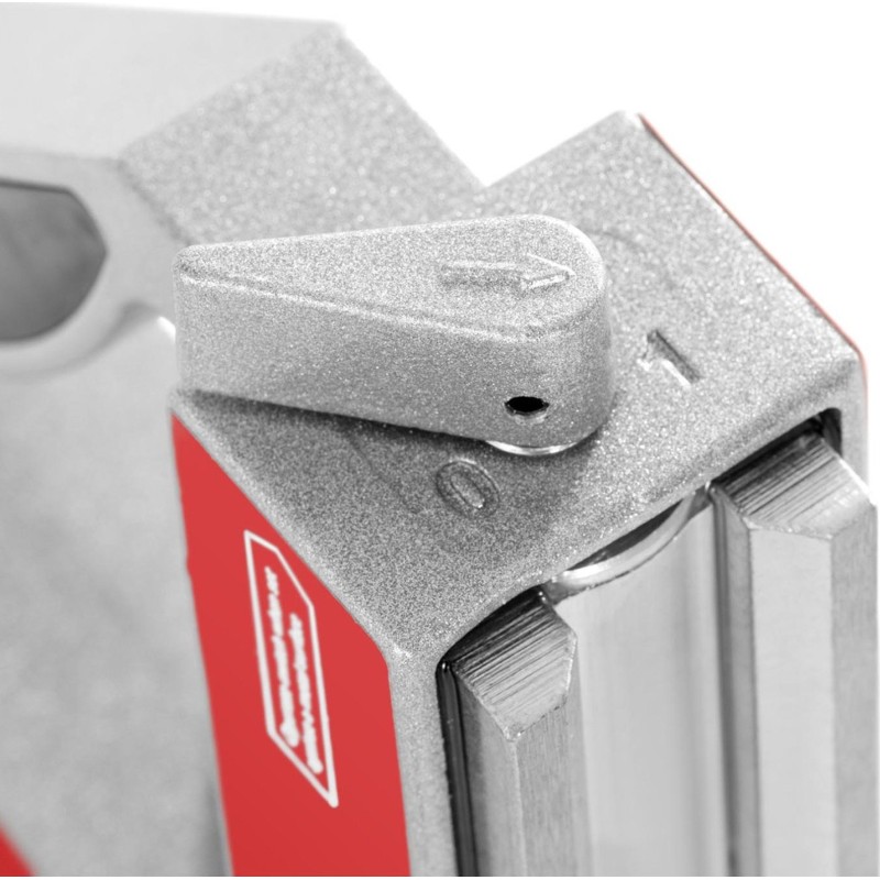 Kątownik spawalniczy marki Stamos sprawdzi się podczas spawania, lutowania czy innych prac montażowych. Urządzenie posiada kąt wewnętrzny 90. Każda powierzchnia styku aktywowana jest osobno za pomocą przełącznika. Silne połączenie magnetyczne zapewnia najwyższy poziom bezpieczeństwa. Duża siła przyciągania 50 kg pozwala na łączenie ze sobą ciężkich metalowych elementów. Obudowa kątownika wykonana została ze stali. Wyłączone urządzenie łatwo można wyczyścić z metalowych opiłków czy wiórów.